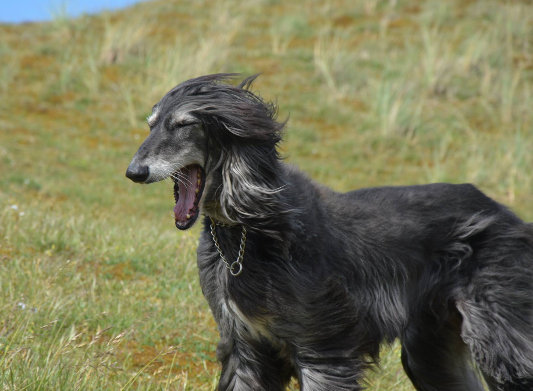 Sie erholte sich von ihrem anstrengenden Leben so gut, dass sie in kürzester Zeit als fast ältestes Afghanen-Mädchen die Führung des Rudels übernahm. Sie konnte jedem sehr deutlich sagen, was er zu lassen oder zu tun hatte, ohne dabei übergriffig zu werden. Sie liebte das gemütliche Sofa und nur Auserwählte durften sich zu ihr legen. Draußen lief sie immer frei, sie hatte nach wenigen Wochen beschlossen, sie würde ihrem Frauchen überall hin folgen. Wo auch immer ich saß, Dorothy lag neben mir – mein grauer Schatten. Sie durfte ihre letzte Lebenswoche in der Normandie verbringen und sie freute sich jeden Tag wie eine Junge auf den Spaziergang.