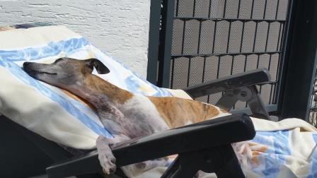 Auf der Terrasse spielt sie mit Vorliebe: weggegangen Platz vergangen....