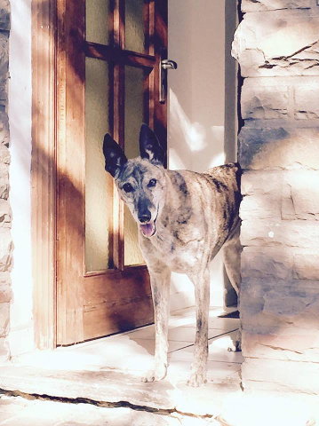 Ein Magyar Agar-Rüde in großer Not in Ungarn...das Tierchen kam und wir waren ziemlich ratlos. Unsere damalige Pflegemama Angela nahm den Buben ohne Murren auf.