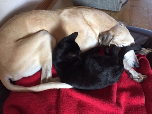 Eigentlich wollte die Mama von Natascha wieder einen Windhund - eine Afghanen-Hündin. Und Natascha verliebte sich spontan in den Sloughi-Buben, der zum Erstaunen des Ehemannes (der Zuhause geblieben war) noch am gleichen Tag es sich in seiner neuen Familie gemütlich machte.