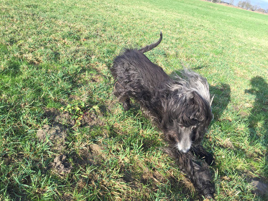 Ich habe heute Vormittag ganz schnell ein paar Grußfotos von Hamal beim Spatzen rasieren gemacht. Ihm geht es hervorragend, er ist ein ausgeglichener, unglaublich lieber, großer Knuddelhund, ein absoluter Vorzeigeafghane und bis auf ganz kleine Macken, wie eine verletzte Kralle oder mal einem Infekt, topgesund. Ich habe seinen furchtbaren Behang mit großem Aufwand im Griff, was am Anfang ein echtes Problem darstellte, denn neben dem Filzen, bei dem man förmlich zusehen kann, wirft er auch noch viele Hautschuppen ab, die ihm dann natürlich auch noch Hautprobleme bereiten. Es ist mir immer noch unbegreiflich, wie man einem Hund solche Haarmengen verpassen kann. Aber da er mit Pferden und inzwischen einer kleinen nervigen Terrierspielgefährtin täglich bei Wind und Wetter unterwegs ist, ist ihm die Schönheit vollkommen egal, meinem Staubsauger und Wischeimer allerdings nicht .....:-)