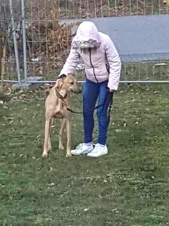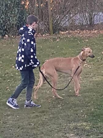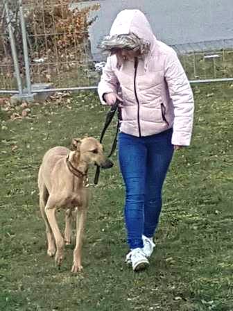 Wegen unserem Vorstellungs-Text gab es, als er zu uns kam, jede Menge böser Kommentare bis hin zu der Behauptung, der Hund wäre rot ("er ist rot und BASTA!") und nicht sandfarben. Liebe Brillenträger, Emmet ist SANDFARBEN (auch FAWN bezeichnet). Und ein sandfarbener Grey ist der, der am ehesten mit Katzen leben kann - Ausnahmen bestätigen die Regel.