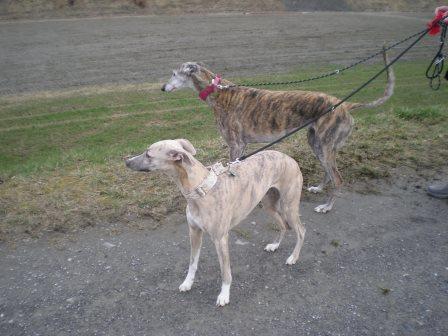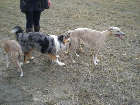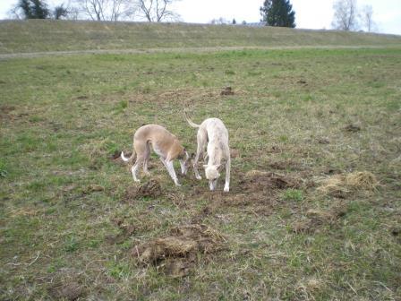 zwei ganz unterschiedliche Whippets bei der Wieseninspektion