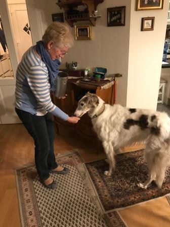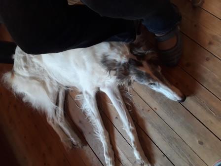 Als ihr neues Frauchen kam, legte sich Orsey gleich auf ihre Füße - passt :-)