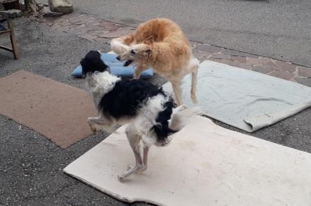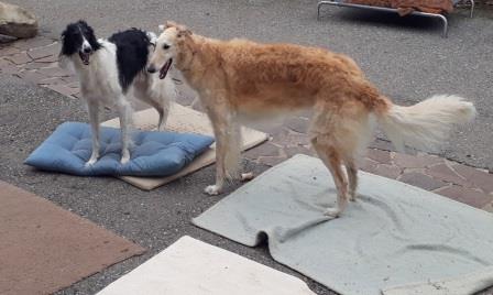 hinten Patenbarsoi Mira, der das Gespiele zu blöd wird...