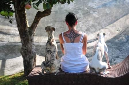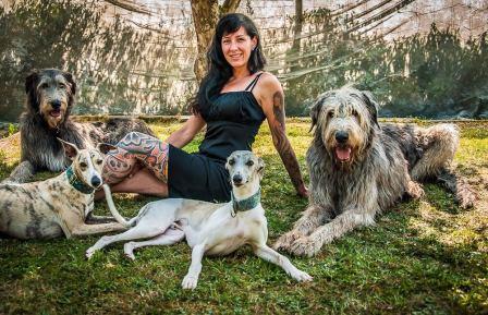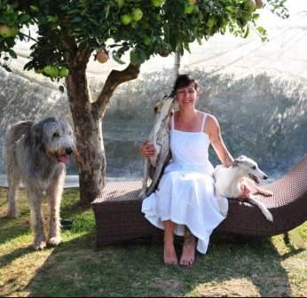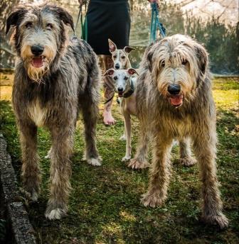Superschöne Fotos von Andi mit ihren iwi-Whippets James (links) und Bimo (rechts) sowie ihren beiden Irish Wolfhounds.