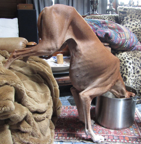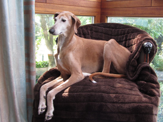 Er schätzt seinen geregelten, übersichtlichen Tagesablauf. Morgens auf einer großen Runde ausgiebig schnuppern, frühstücken, schmusen, chillen, dann die Zäune bewachen. Wenn Nushnush mittags ihre Tabletten erhält, ist Zeit für Leckerli. Danach wird die Gartenumgebung auf Veränderung kontrolliert und es ist rennen angesagt - gerne auch mit seinem Freund, einem Husky. Immer wieder muss er die Hundebetten neu richten, nachdem er beim Probe liegen festgestellt hat, dass da Verbesserungen nötig sind. Den Tagesabschluss bilden Abendessen, im Bett kuscheln und schlafen. Nachts muss er dann aber nochmals raus, den Garten kontrollieren. Er liebt sein Privileg, den Hundekochtopf ungestört aus schlecken zu dürfen.