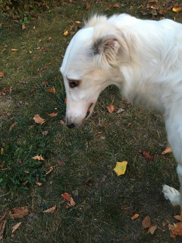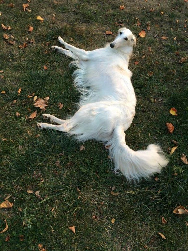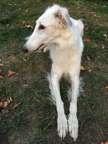 Flocke, eine zwei Jahre alte kastrierte Barsoi-Hündin sucht ein neues Zuhause.