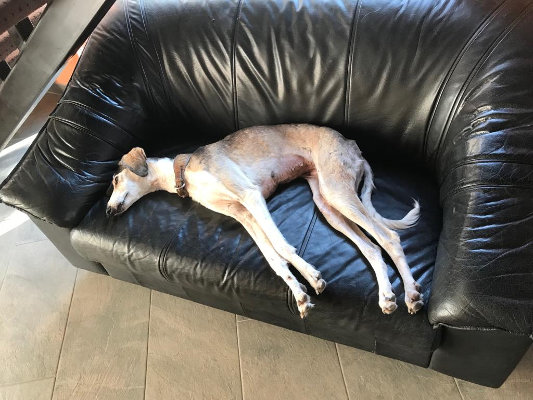 Dann fiel uns jemand ein, den man fragen könnte. Und hier ist die kleine Maus nun: eine kastrierte mittelalte smooth-Saluki-Hündin, die mindestens so entzückt ist, wie Jashar....