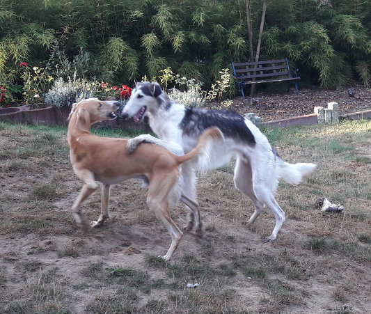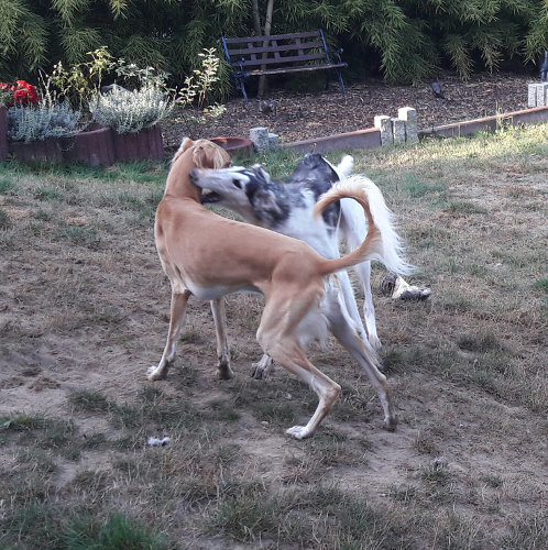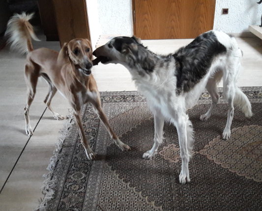 Zum Glück gab es bei WiN noch einen jungen Barsoi-Buben für unseren Charime. Sein Frauchen berichtet: