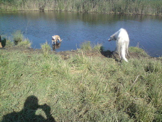 Whippet Ayla und Barsoi Jil (beide 2012 vermittelt) sind mit ihren Menschen in deren Heimatland zurückgezogen.