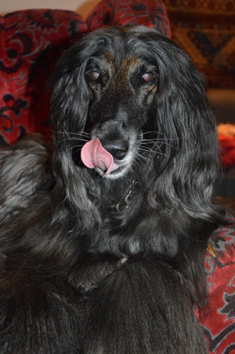 Zum Glück ist unsere Angie ein Afghane vom alten Schlag, sah ihr neues Frauchen, Schwänzchen wedelte und sie legte sich beim Kaffeetrinken ganz entspannt daneben.