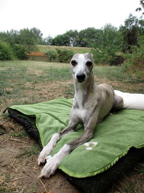Als Barsoi Belami dann in ihr neues Zuhause aufbrach, kam unser Whippet Dana mit Frauchen Jutta zu Besuch.