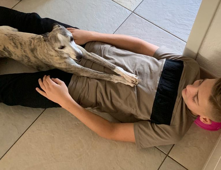 „Hier alles bestens, Milou wiegt jetzt knapp 12 kg, Oberschenkelmuskulatur kehrt zurück…er bereitet uns allen sehr viel Freude.“