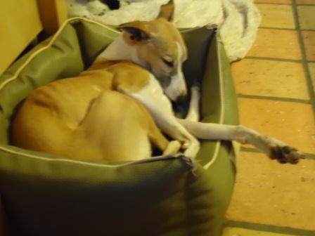 morgens in der Küche vor dem Fressen hat er immer in diesem kleinen Bettchen geschlafen, nachts natürlich im Bett;-)