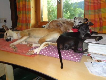 Seine liebsten Spielkameraden sind unsere Windspiele und zwei unserer ruhigeren Whippets, die anderen Whippets sind ihm zu "wild". Dimitri ist ein lieber, gemütlicher Schatz, der die liebevollsten Menschen der Welt verdient hat.