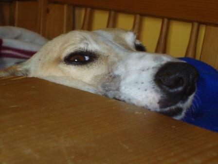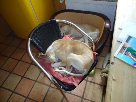 Dimi hat sich schon sein Lieblingsplätzchen ausgesucht, ganz nah bei Vivi oder/und ganz nah am Kirschkuchen...