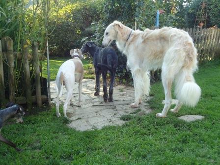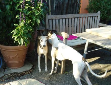 Chester und die Whippetdamen haben sich kurz rundum beschnuppert und für gut befunden, und schon hat er es sich zwischen den Kids bequem gemacht-die beiden waren stolz wie Oskar.
