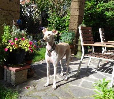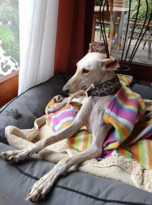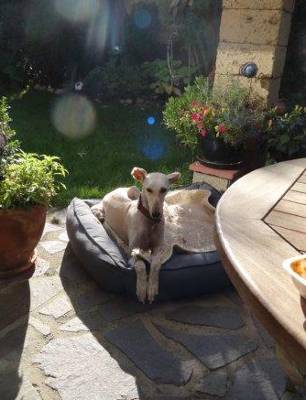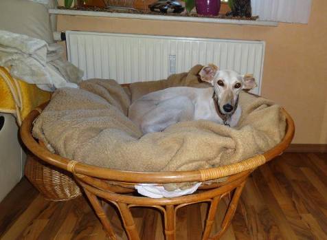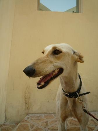 Im Haus ist sie eine ganz liebe und anhängliche Maus, die sich äußerst wohlerzogen benimmt. Draußen ist sie "fit wie ein Turnschuh", jederzeit bereit, Häschen zu fangen. Wir suchen laufbegeisterte Saluki-Liebhaber mit einem sicher eingezäunten Grundstück.