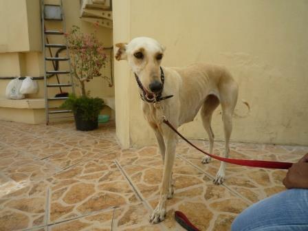 Sugar hat kupierte Ohren, sie wurde für Rennen in Qatar eingesetzt.