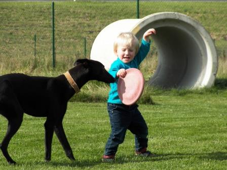 Bartolo spielt sehr gerne, er kann sogar Frisbee oder Bällchen apportieren. Auch geht er tadellos an der Leine spazieren und liebt Kinder. Katzen aber eher nicht;-)