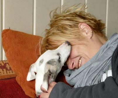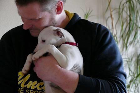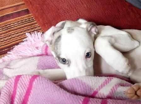 Das zehn Wochen junge Whippetbaby stammt aus einer Zuchtauflösung. Wir haben sie mit zwei ihrer Geschwisterchen übernommen und werden die nächsten Tage von den anderen berichten.