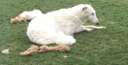 June ist umgezogen! Wie man sieht, wurde sie durch ihren neuen Freund Tolja zärtlich begrüßt:-) Es gibt aber auch noch ein gleichaltriges Barsoimädchen namens Edna, in der June bereits eine tolle Spiel- und Tobefreundin gefunden hat.