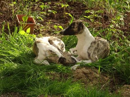 Also Matteo und Carino leben fortan mit Amy, Spicy-Paul und Jonas, also zwei Greys und einem Barsoi-Azawakh, ein bis fünf Kindern (wieviele noch Zuhause leben, ist uns jetzt entfallen, sorry) und Annette und Helmut:-)
