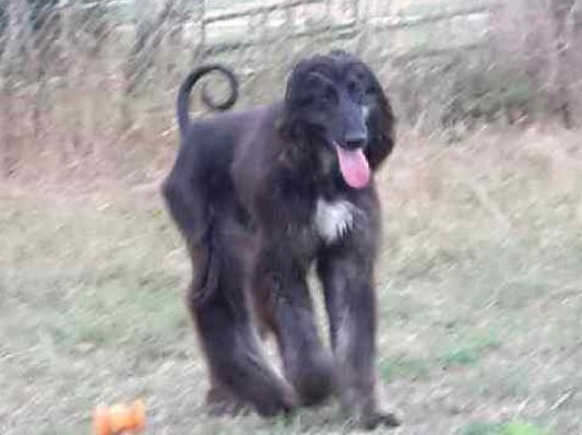 Rihanna, eine ein Jahre alte Afghanen-Hündin in black-brindle sucht ihre Familie.
