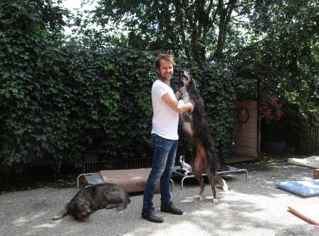 Er ist erst seit gestern Nachmittag bei uns, hüpft aber schon ziemlich glücklich durch den Garten (den er bisher nicht hatte) und findet seine neuen Kumpels und Kumpelinen sehr spannend. Bubi hat eine sehr lustige Art, Wasser zu trinken: Kopf in die Schüssel bis zu den Ohren und dann reinschnauben :-)