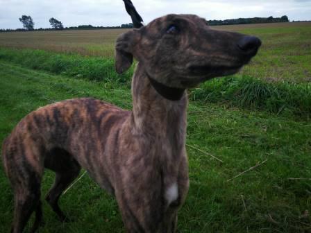 Jetzt sind wir aber spät dran - letzten Donnerstag stieg die kleine Greyhündin Emma direkt von unserer Cheftransporteurin Monika ins Auto von Sandra, Emmas neuem Frauchen.
