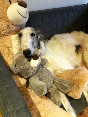 Gestern zog die kleine Anna um, unser Barsoimädchen in Galgogröße:-)
