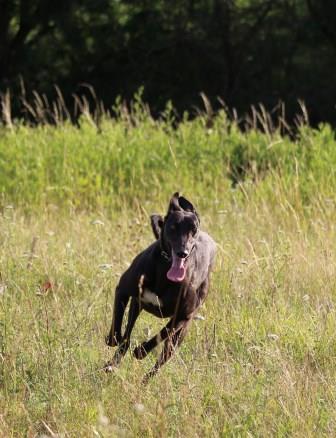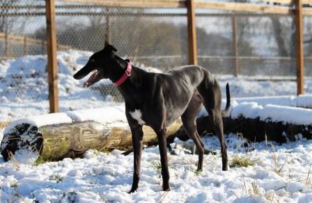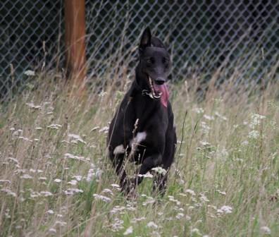 Mit all unseren Hunden bestens verträglich, spielt sie gerne mit Kuscheltieren oder tobt durch den Garten. Nach einer Eingewöhnung/Bindung kann man sie auch leinenlos laufen lassen, ja- immer vorausgesetzt, es ist keine Katze, Reh, Hase etc. unterwegs.