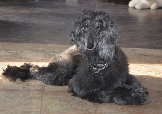 Nicki, ein fünf Jahre alte blaue Afghanen-Hündin.