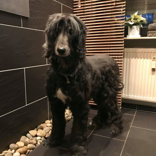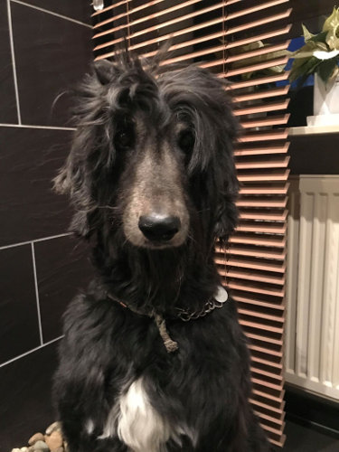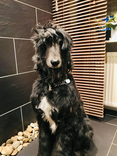 Ramanih, ein 6 Jahre alter Afghanen-Rüde in schwarz blau, sucht ein neues Zuhause.