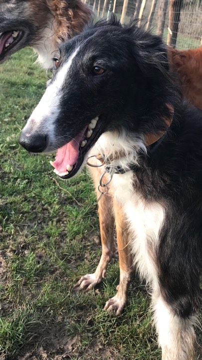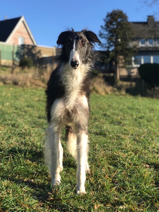 „Hier die Beschreibung von Ada: lieb, liebenswert, anhänglich, brav, schmusig, zurückhaltend, draußen wild. Sie ist eine sehr kleine, brave Maus. Stubenrein und schließt sich schnell an. Sie wird ohne Leine laufen können später. Sie macht nichts kaputt und schläft brav bei den anderen Hunden. Sie mag andere Hunde und Menschen. In manchen Situationen ist sie vorsichtig, z.B. wenn man einen Gegenstand in der Hand hat oder aufhebt, oder den Ball wirft. Sie ist perfekt würde ich sagen. Das Fell wurde ja abgeschnitten und ist ganz dunkelbraun. Ein einfacher Barsoi ohne Macken. Ok, an der Leine ist sie eine Katastrophe aber das war es auch schon. „