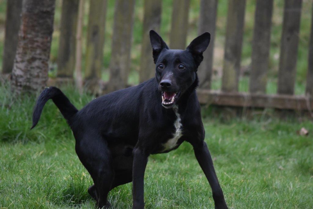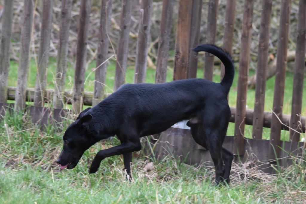 Er ist ein munterer kleiner Kerl, der eifrig alles Mögliche lernt. Auch wissen wir nun, dass er mit Katzen leben könnte.