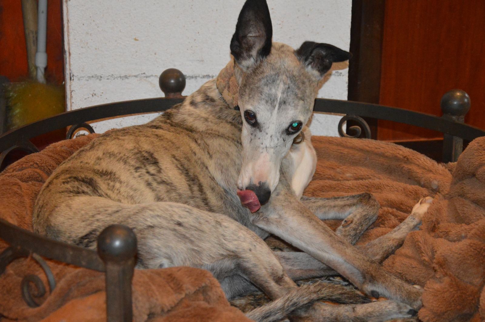 Er hat sein ganzes Leben in einem großen Whippet-Rudel verbracht, er wünscht sich mindestens einen Kumpel (am liebsten einen Whippet) im neuen Zuhause.