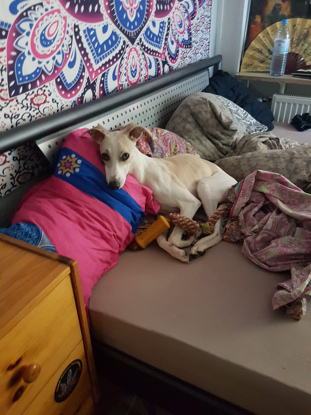 Andere Hunde sind seine Lebenslust und er würde gerne bei einem weiteren Whippet leben und einem Menschen, der Zeit hat, ihm die Welt zu zeigen. Am liebsten spielt er den Tag über im Garten.