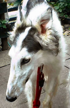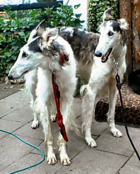 Odesso wohnt jetzt bei einem anderen Barsoi-Rüden. Nach einem Kennenlern-Besuch auf der Pflegestelle war das neue Frauchen spontan begeistert und hat heute Odesso abgeholt. Er war die Nacht ziemlich unruhig, ging aber heute schon "aufgeweckter" spazieren als gestern. Wir freuen uns sehr für Odesso und wünschen ihm alles Gute!
