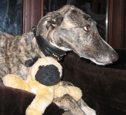 Auch unser Henry ist am Mittwoch bereits umgezogen. Sein Frauchen beschloß nach jahrzehntelangem Bsitz von Afghanen nun auf Galgos umzusteigen. Henry ging auch gang lieb mit und folgt Frauchen nun auf Schritt und Tritt. Er freundet sich mit den hausansässigen Katzen an, was aber wohl noch ein bißchen dauern wird (sein Frauchen ist aber im Gewöhnen an Katzen sehr erfahren).