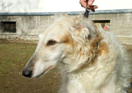 Neu in der Vermittlung ist eine 12,5 Jahre alte rot-weiße Barsoi-Hündin. Ihre Vorbesitzerin wollte sie vom Tierarzt einschläfern lassen, der sich aber weigerte und Kontakt mit dem Züchter aufnahm. Derzeit lebt die Hübsche auf einem privaten Pflegeplatz, wo sie leider nicht für immer bleiben kann. Sie ist kastriert, mit allem verträglich (Kinder, Katzen, Hunde) und Auto fahren gewohnt.