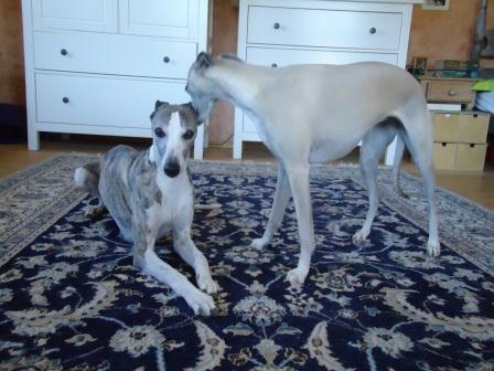 Ich erinnere noch wie heute, dass die Pflegemama sagte, ich solle doch mal in ein bestimmtes Zimmer gehen, denn da sei jemand besonders Süßes... Obwohl ich ursprünglich wegen eines anderen Whippets die Pflegestelle besucht hatte, spürten Jamie und ich auf den ersten Blick, dass wir zusammengehören.