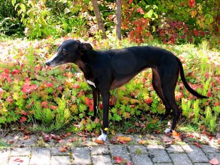 05.09.06 Inzwischen ist sie aufgetaut, total fröhlich und tobt und springt im Garten mit den anderen umher. Man merkt ihr in keinster Weise an, dass sie die ganzen Jahre als Einzelhund gelebt hat. Besonders wohl fühlt sich Giulia unter Whippets und Windspielen. Sie läuft leinenlos und hört ziemlich gut.