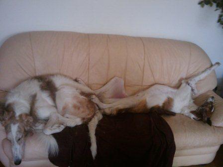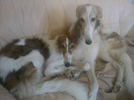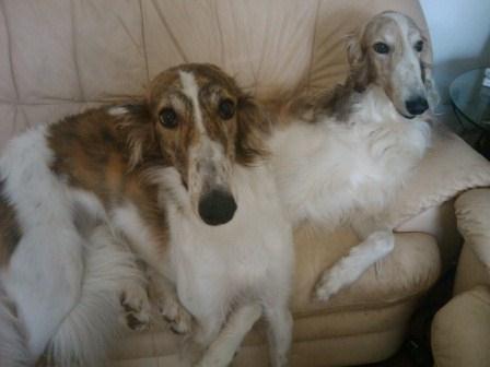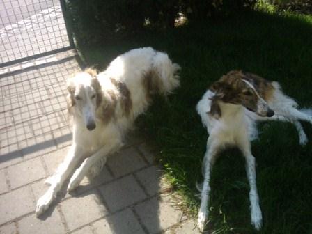 Kiara wohnt mit unseren ehemaligen Barsoi-Babies Maja, Mara (vermittelt Juni 2006) und einer weiteren Barsoi-Hündin zusammen. Als "alte" Barsoi-Freaks sind ihre Menschen begeistert von der Hübschen.