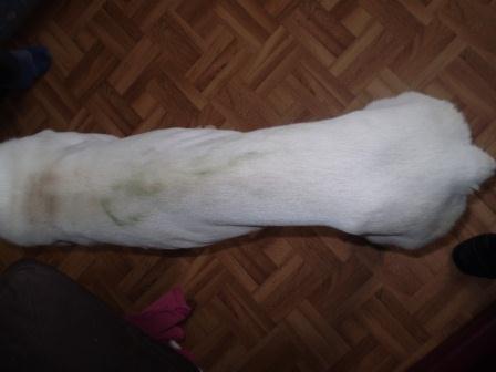 mit Grasflecken, aber man sieht, dass er 4,5 kg mehr auf den Rippen hat.