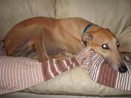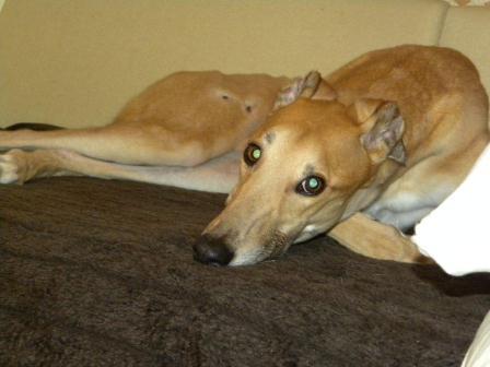 Spicy hält sich für einen kleinen Schoßhund, er weiß nicht, wie groß er ist denn sein liebster Schlafplatz ist der Schoß vom Frauchen.