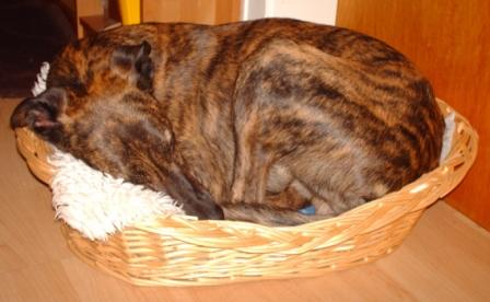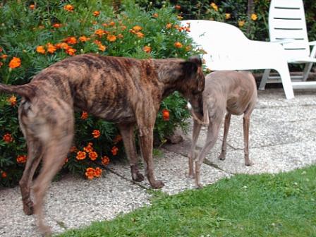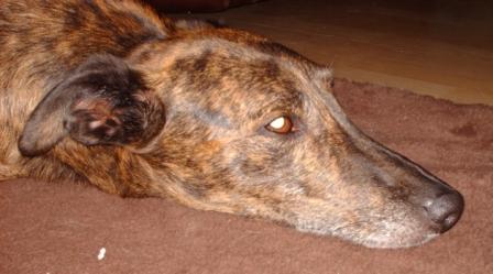 Speedy machte sich ebenfalls auf die Reise, der liebe Whippet-Grey-Bub hatte Knochenkrebs. Da wir ihn damals aus einem Tierheim übernahmen, wußte niemand genau, wie alt er war. Der Tierarzt seiner Besitzer schätzte ihn jedenfalls viel älter, als wir es gesagt bekamen. Egal, wie alt, Speedy hatte die letzten zwei Jahre ein superschönes Leben, er war immer mit dabei, brauchte nie eine Leine, schlief im Bett und war der Liebling von allen.