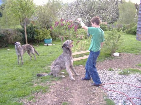 Conroy ist heute abgeholt worden. Er hat sich gleich von seiner besten Seite gezeigt, sprang ruck-zuck in den fremden Bus und hat sogleich einen Apfel geklaut, den er dann genüßlich auf der Wiese vertilgt hat. Conroy findet seine beiden IW-Mädels ganz klasse und hat noch nicht ein Mal geknurrt - so hatten wir das auch erwartet;-) Die beiden kleinen Menschen-Mädels hätten am liebsten noch unser Windspiel eingepackt.