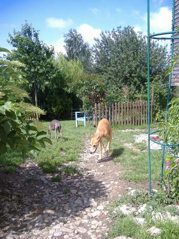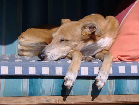 Heute Morgen fuhr Loeki mit ihrem neuen Harem Richtung Bremen. Ihr Frauchen Andrea kam ja schon am Mittwoch in der Wüste an um dann in einer ziemlich "gewöhnungsbedürftigen" Ferienwohnung hinterm Waldhügel zu residieren;-) So hatten ihre beiden Lurchers Angie und Marlin genügend Zeit, sich an Loeki zu gewöhnen und umgekehrt. Eigentlich zog Loeki schon gestern aus, Spaziergang um den Alpsee, Eisessen am Bodensee in Lindau, Übernachtung in der Fewo. Zu Andreas Überraschung schliefen Angie und Loeki nebeneinander. (aber wir sagten ja schon, Loeki mag JEDER!)